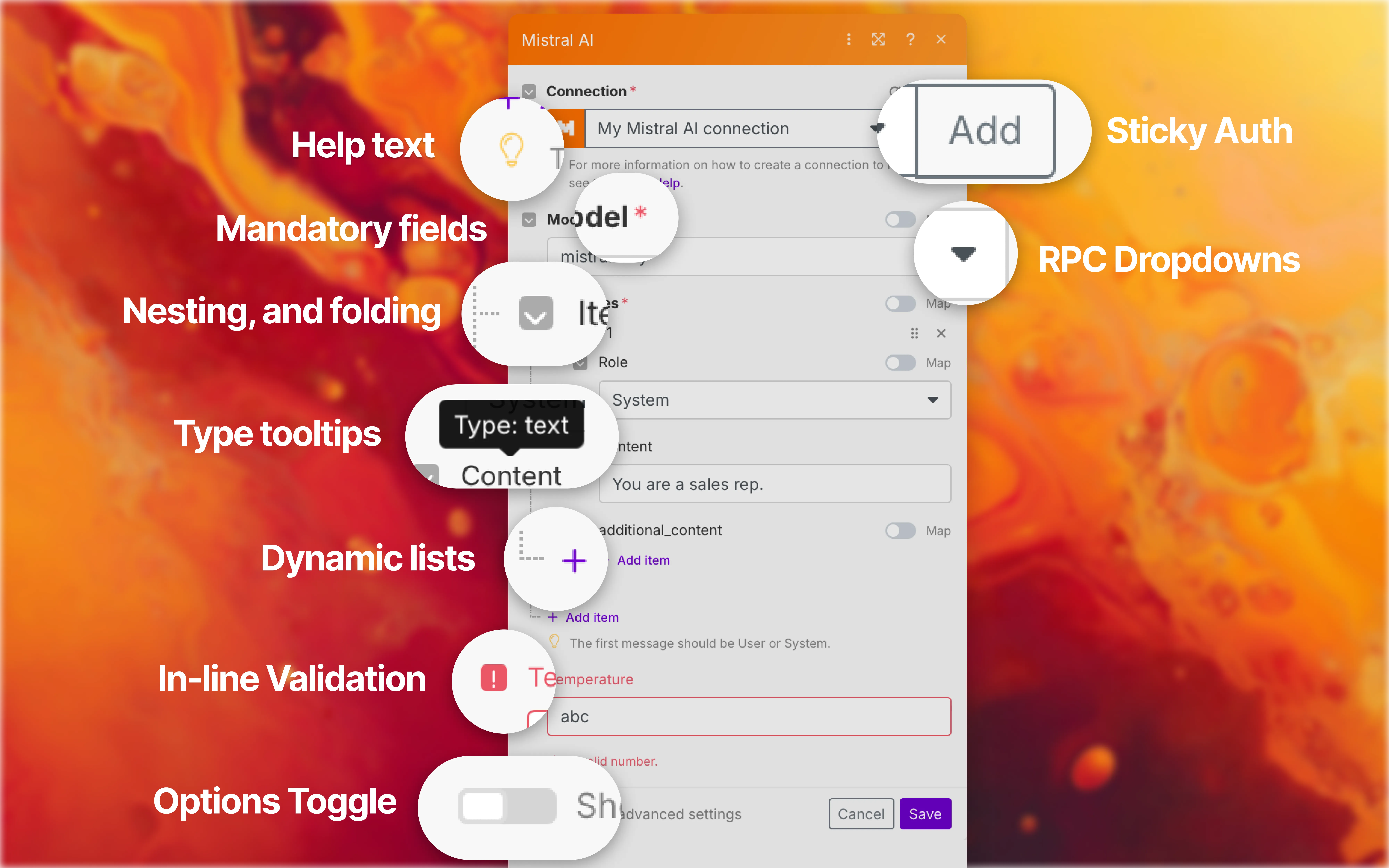 While we can only set up first run success so much, still is the nature of development to debug and troubleshoot. When things go inevitably wrong, we’ve designed mechanisms that predict like output previews, protect like background rate-handling and response pagination, or else surface the problem like error messaging, in a human friendly way.