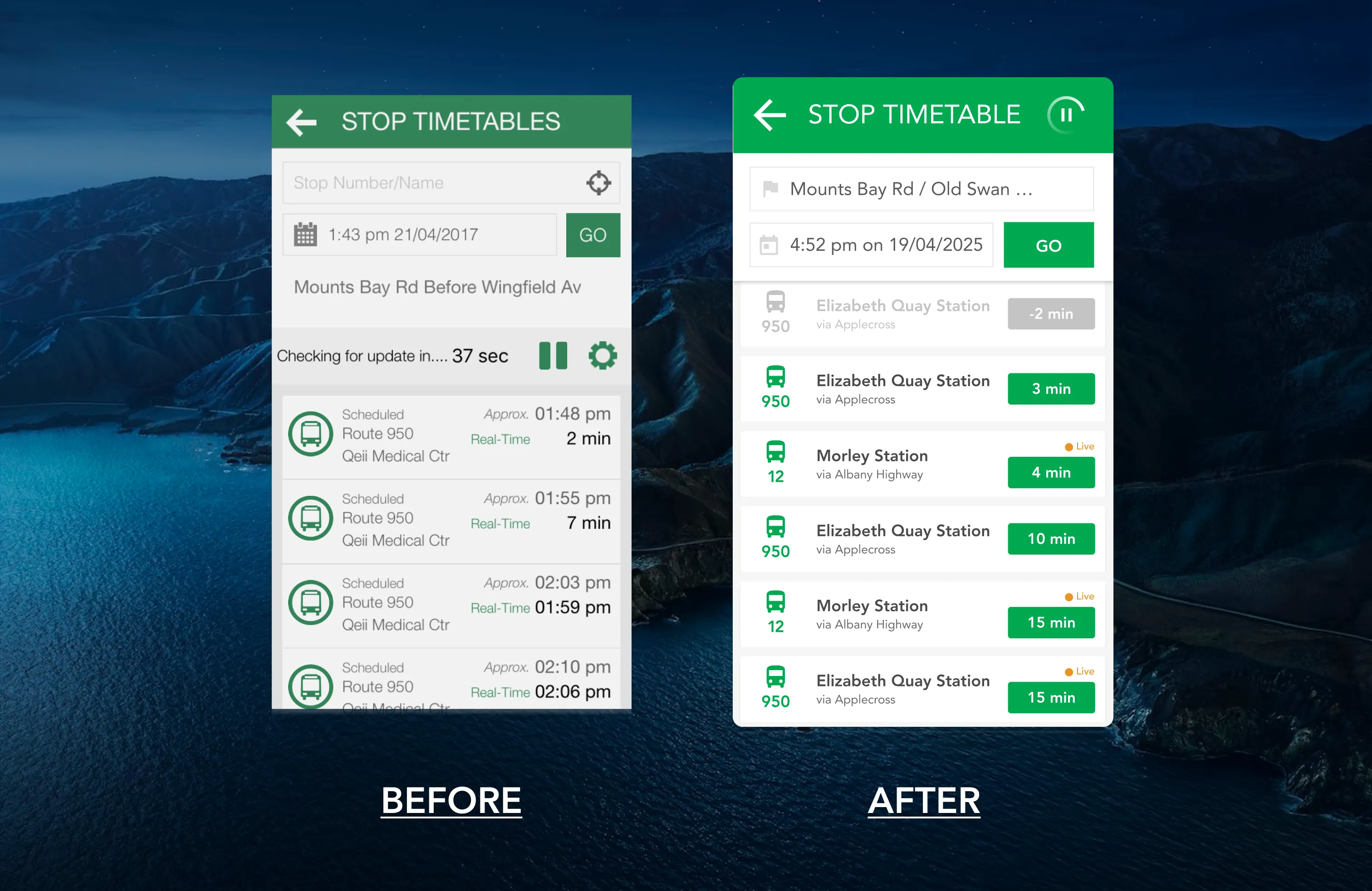 The city had been busy shipping feature-on-feature to transform it from a static, read-only app to a realtime route calculator. In the rush to deliver, UX had been an oversight - and users complained the app looked tired and messy.